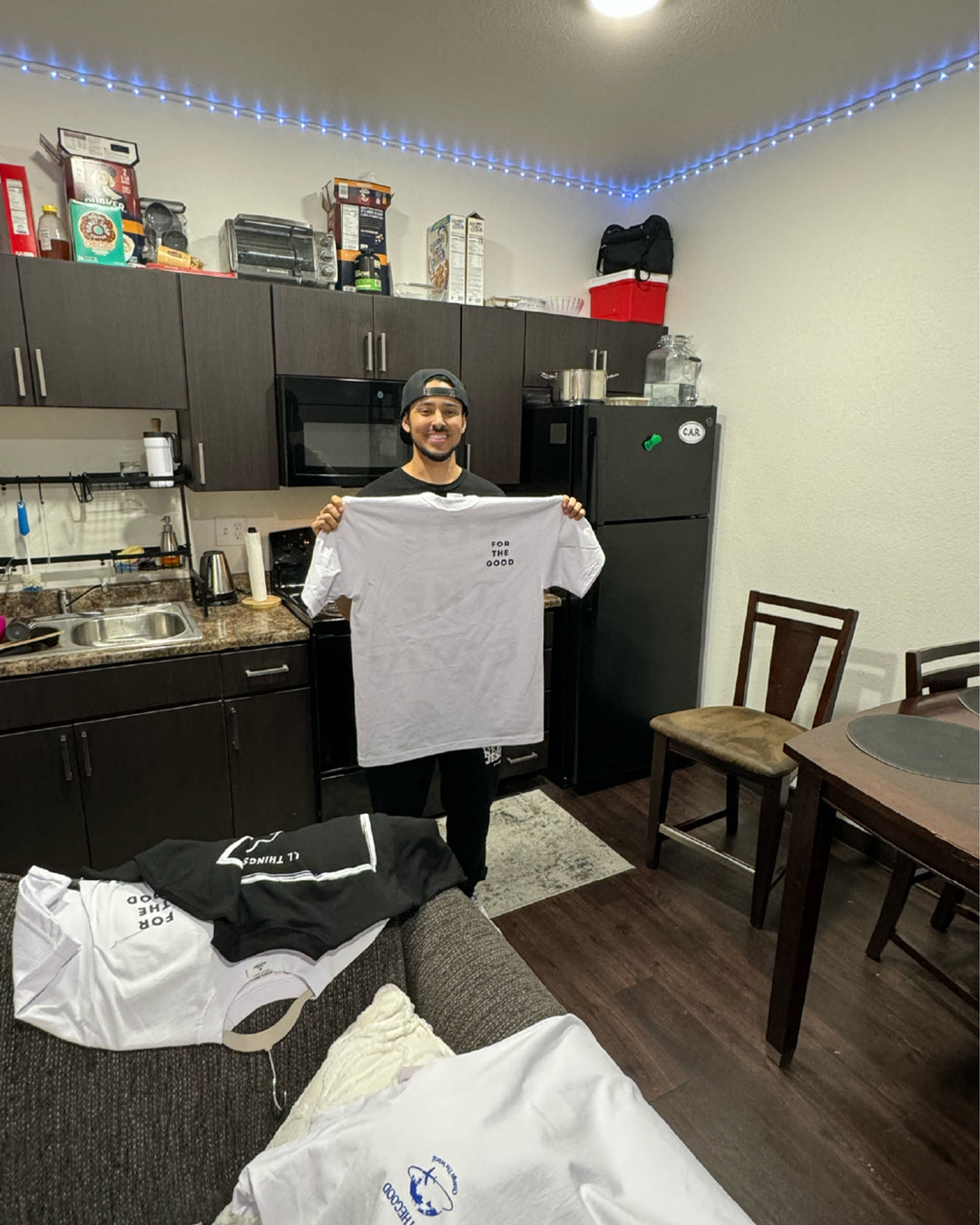 Winston and Cooper were a huge part of why ForTheGood became so popular on campus. They spent late nights helping Nik build the business and bringing great ideas to the table. From helping screen print for hours on end, sorting inventory in their dorm, to setting up the markets on campus and inviting all of their friends. These friends were the backbone of the early stages of ForTheGood and are the reason for why it's still around. With that I cannot thank you both enough for helping Rachel and I and I will forever treasure the memories that were made together!
